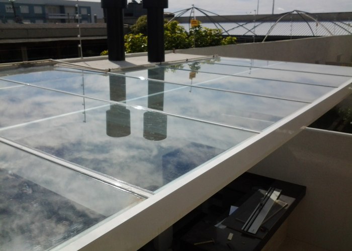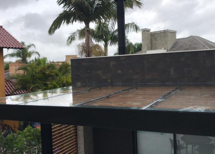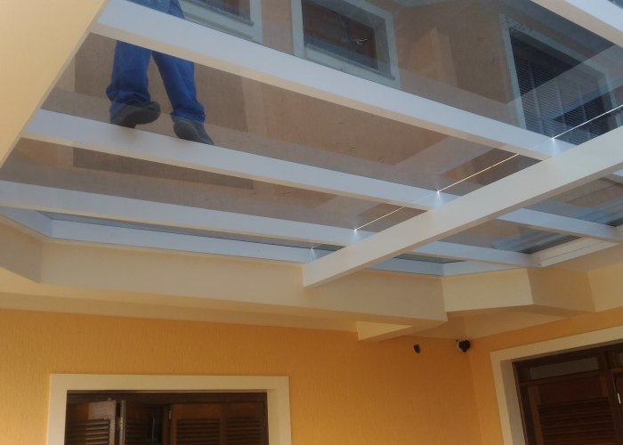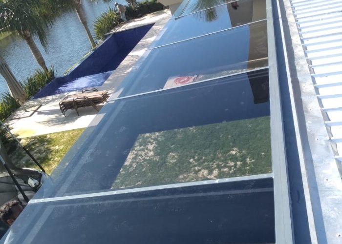 Os vidros mais usados nesse tipo de instalação, são os vidros laminados e os vidros temperados, por serem de maior resistência e durabilidade. Esses vidros precisam ter no mínimo 5 + 5 mm.