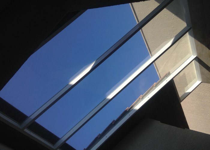 Criar um ambiente luminoso usando-se vidro na cobertura é uma maneira comum de introduzir a luz em áreas centrais de um prédio.