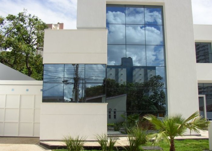 Desenvolvida com o objetivo de reduzir a visibilidade dos perfis de alumínio na fachada do edifício, a pele de vidro constituiu, na década de 1970, uma resposta da indústria às solicitações do mercado. Nesse tipo de sistema, as colunas são fixadas nas vigas pelo lado interno, enquanto o vidro permanece encaixilhado. Com isso, a fachada passa a destacar mais os painéis de vidro, apesar de manter a marcação de linhas horizontais e verticais da caixilharia.